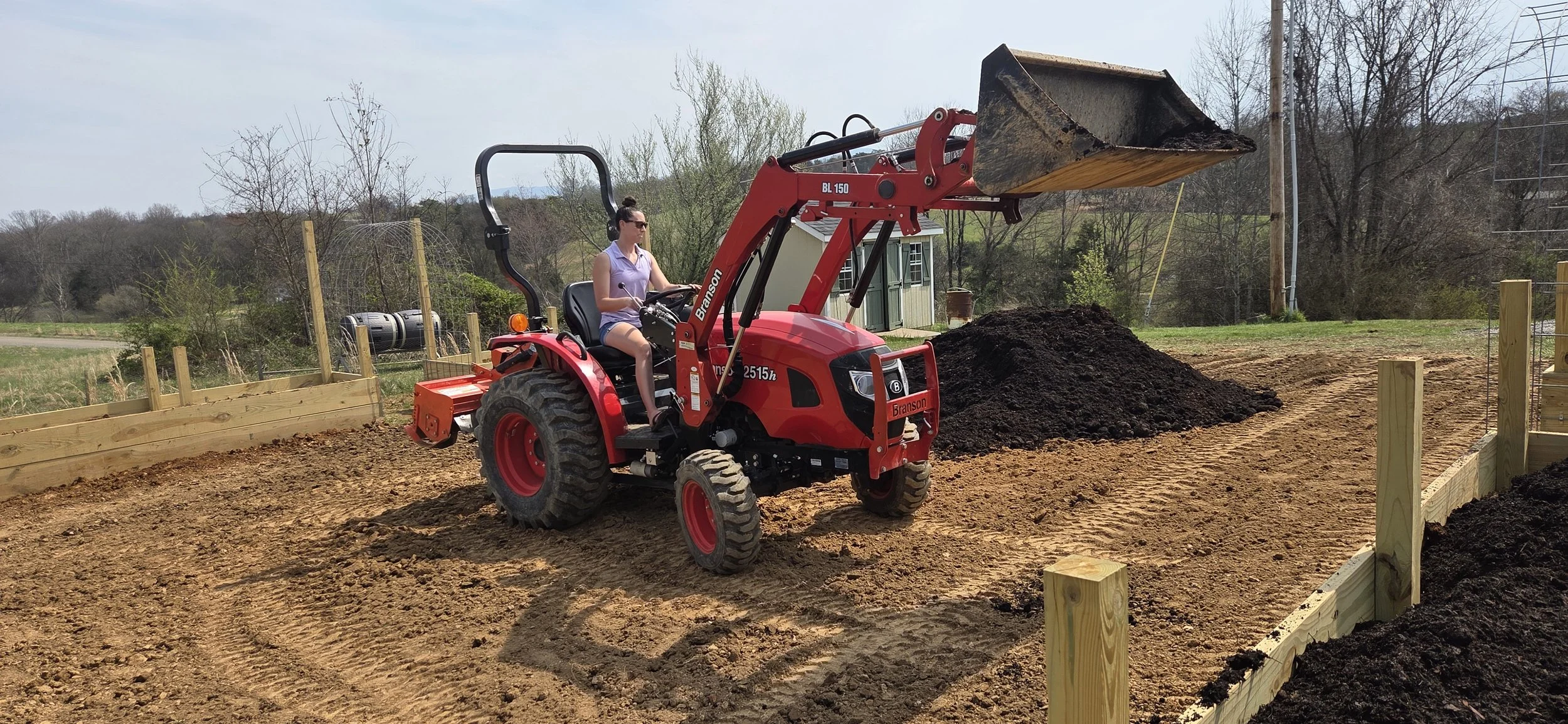 This year, in anticipation of the busy season, we’ve decided to turn our traditional garden into a space that is both functional and beautiful. We ripped out the landscaping fabric, cultivated the entire plot, worked with our son, John, to build raised planter beds, and began the process of filling them with organic matter.
